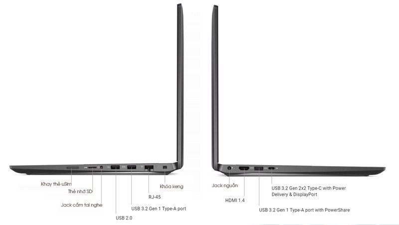 | Cổng giao tiếp | 1x USB 3.2 Gen 2×2 Type-C port with DisplayPort alt mode/Power Delivery (11 Generation Intel) 1x USB 3.2 Gen 2 Type-C port with DisplayPort alt mode/Power Delivery (10 Generation Intel) 1x USB 3.2 Gen 1 Type-A port with PowerShare 1x USB 3.2 Gen 1 1x USB 2.0 port 1x Universal Audio Jack 1x HDMI 1.4a port M.2 2230/2280 solid-state drive |